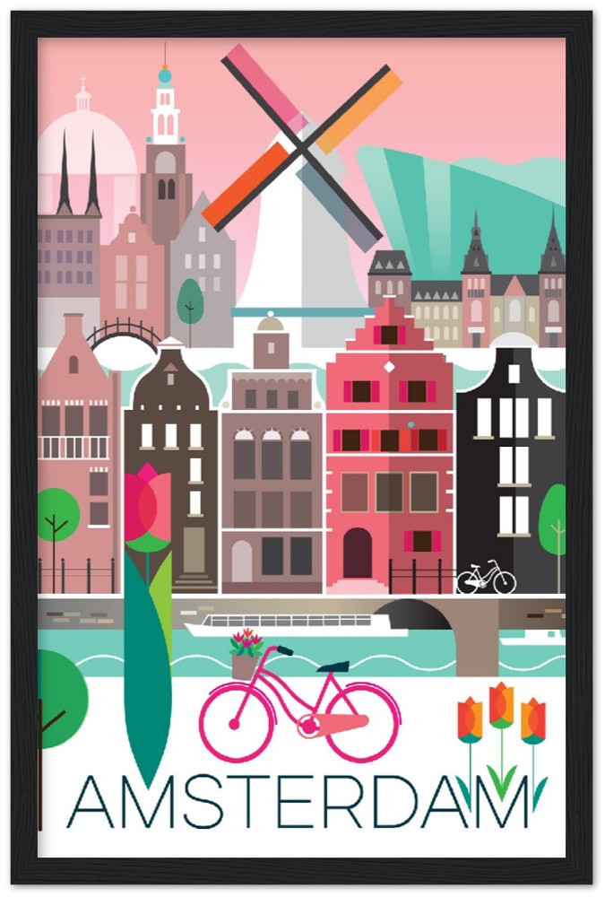 Amsterdam Premium-Poster aus mattem Papier mit Holzrahmen
