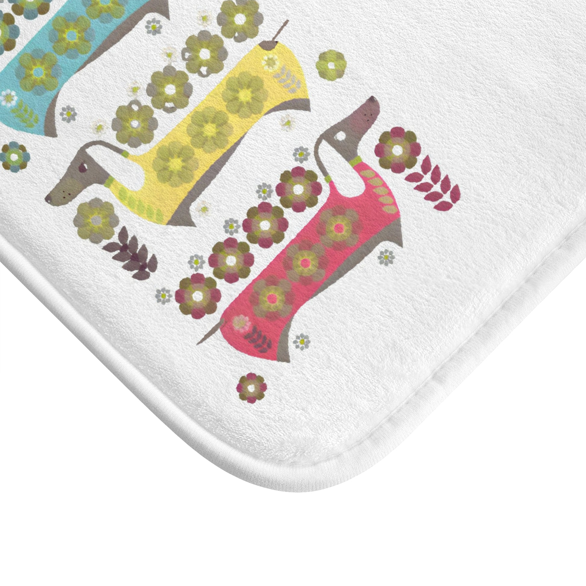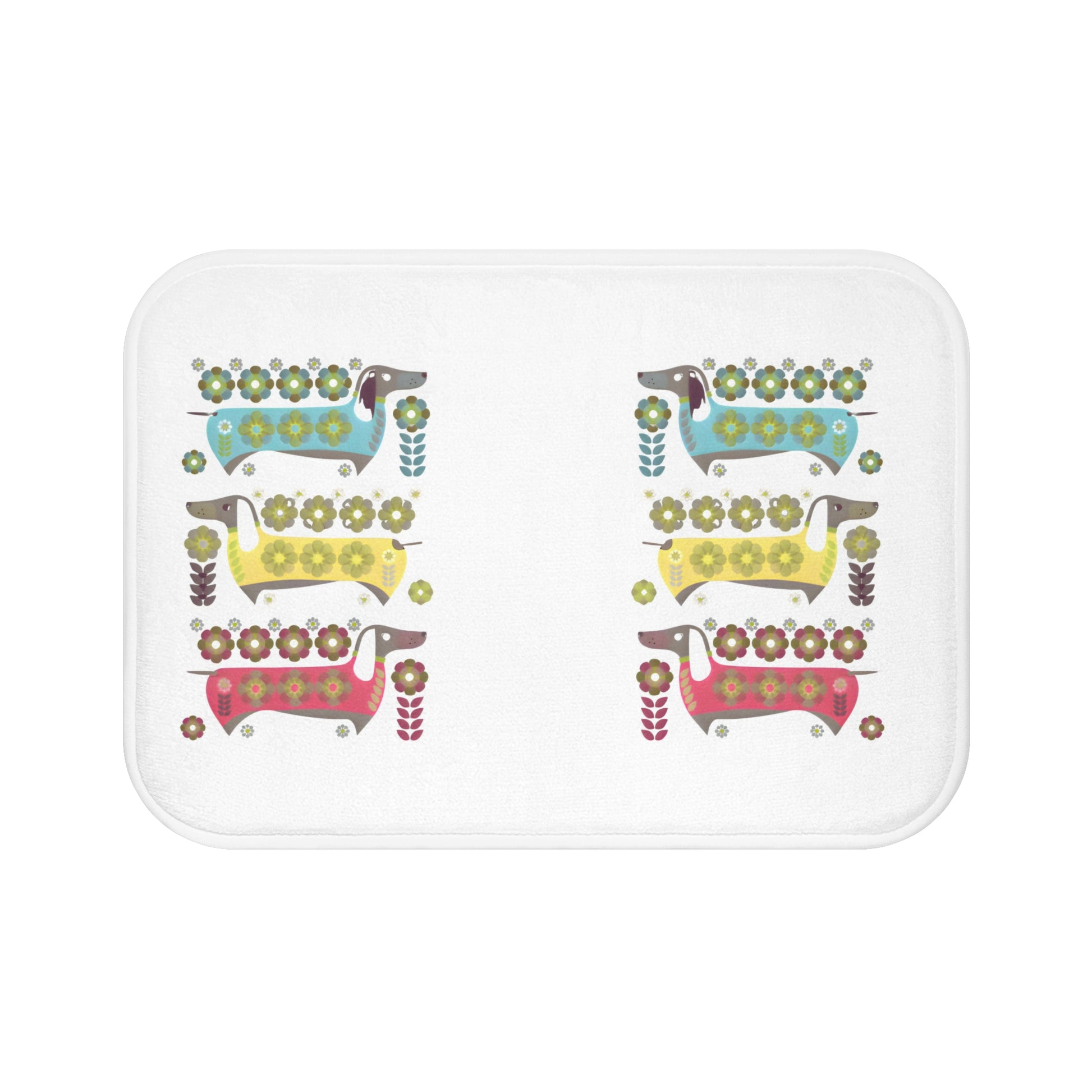 Bring a touch of playful folk charm to your bathroom with this memory-foam bath mat. Soft, plush microfiber cushions tired feet as they meet a cheerful pattern of stylized dachshunds and tiny floral motifs in warm, vintage-inspired colors. The low-profile thickness still provides noticeable comfort and support while the anti-slip backing keeps the mat steady on tile or wood. Subtle reinforced binding around the edges adds durability and a finished look that holds up to daily use. It’s an easy way to brighten a morning routine or add a cozy accent to a guest bath.