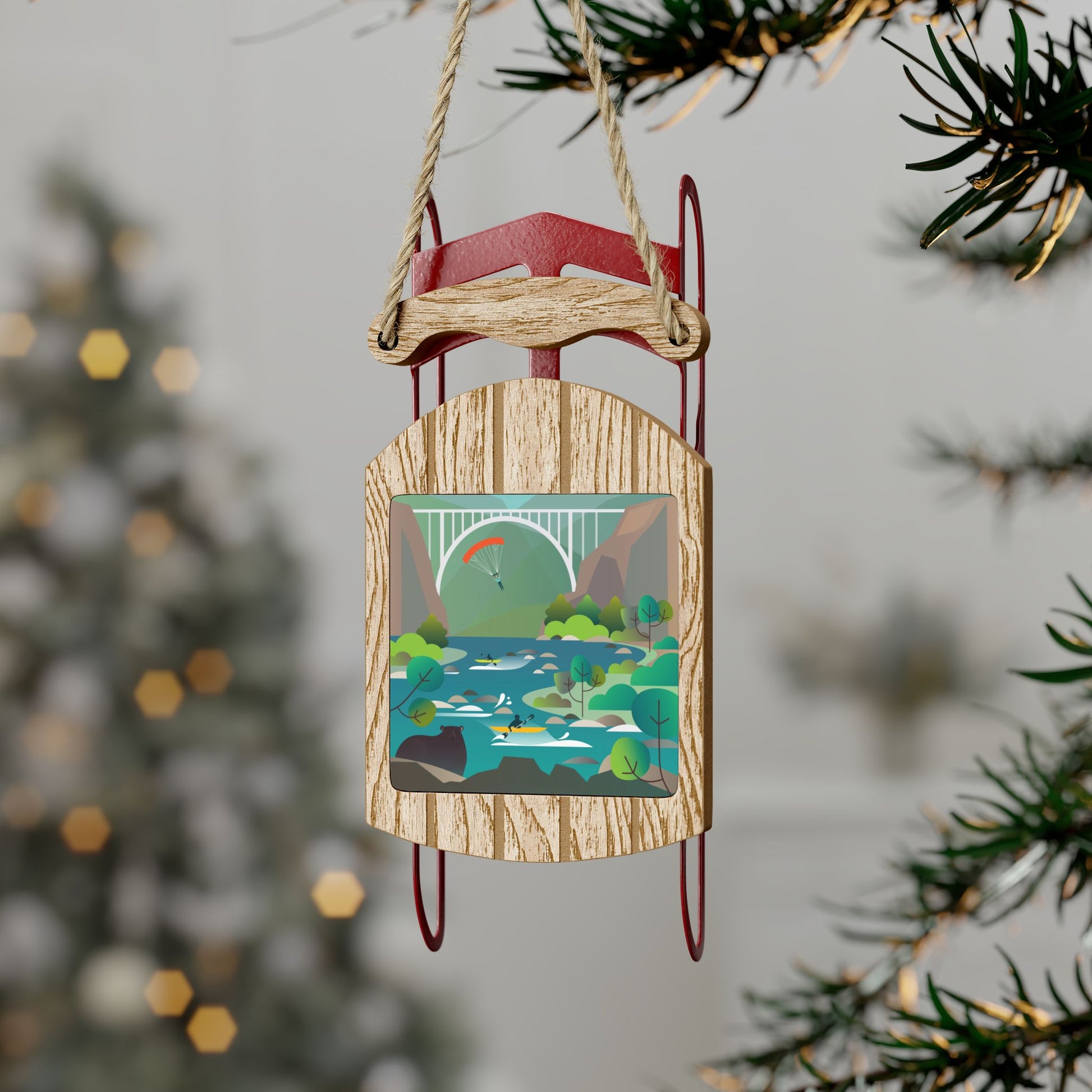 Sled into the holidays with our sled ornament featuring your favorite spot!